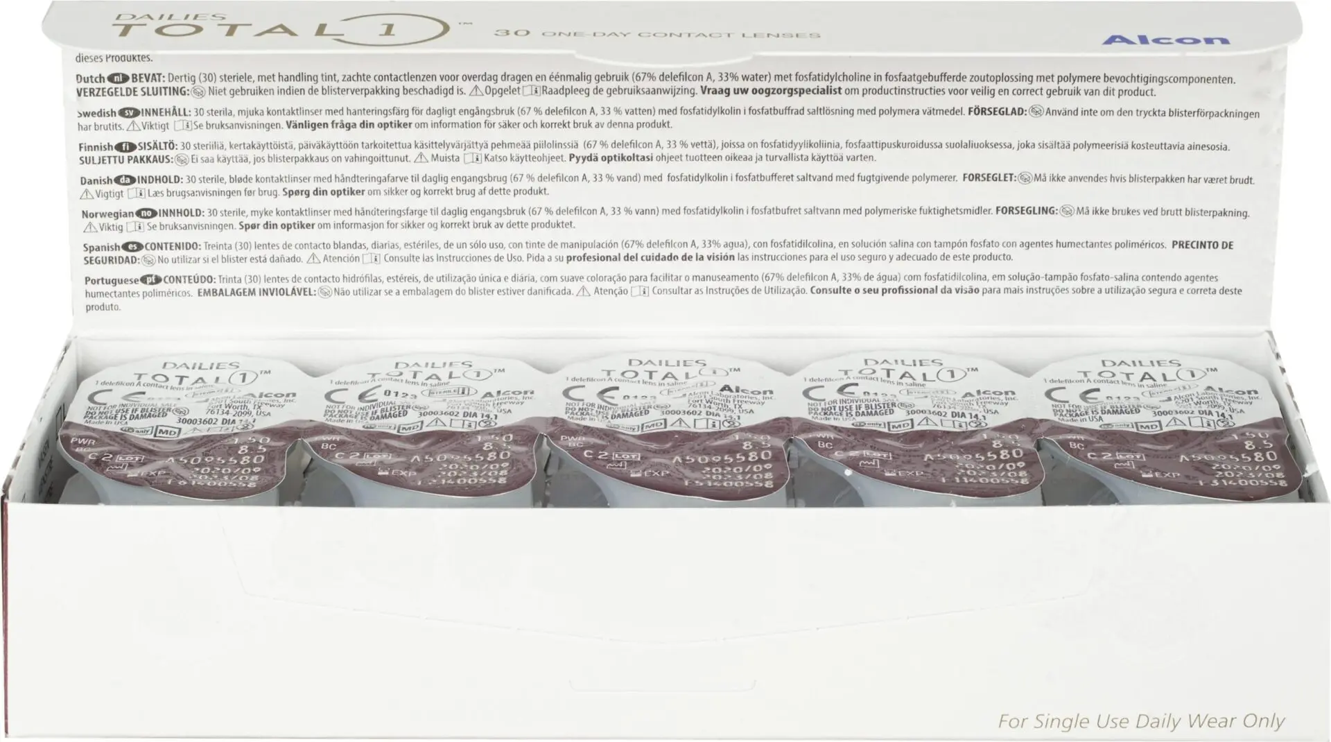 DAILIES TOTAL1 – Мягкие контактные линзы ежедневной замены из уникального водоградиентного материала. Внутри линзы прочный дышащий материал, а ультрамягкая поверхность почти на 100% состоит из воды. В результате натуральная слеза – это все, что касается ваших глаз. Линзы настолько комфортны, что не чувствуются на глазах.